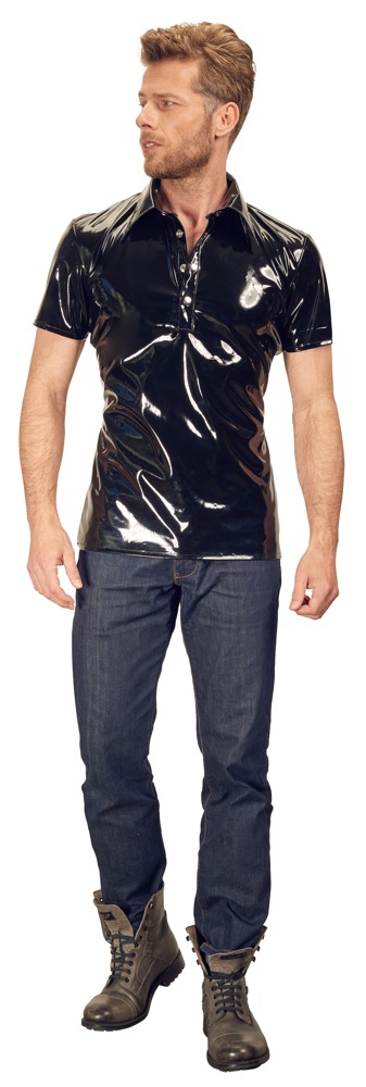 Schwarzer Lack ist mit seiner glänzenden Oberfläche ein sehr aufregendes Outfit-Material - doch im klassischen Polo-Styling kommt dieser Glanz erst richtig rüber! Die enge Schnittführung und der hochelastische Lack in 4-Wege-Stretchqualität betonen Deinen Oberkörper und Deine Muckis hervorragend. Dazu trägt sich das Shirt herrlich bequem – ob im Alltag, im Club oder auf Partys.