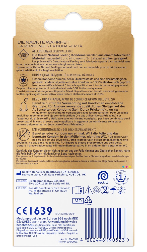 Mit den Durex Natural Feeling Kondomen erlebst du Sicherheit und intensives Gefühl vereint. Genieße die natürlichen Haut-an-Haut-Kontakte und vertraue auf die bewährte Qualität von Durex für unvergessliche Momente!