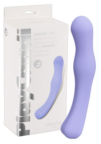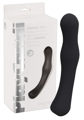 Dildo mit zwei unterschiedlichen Enden, auf der einen Seite mit zwei ineinander übergehenden Kugeln, auf der anderen Seite abgeflacht mit erhabener Kante. Gesamtlänge 18 cm, Ø 2,5-3,5 cm. Material: Silikon, phthalatfrei gemäß EU-Verordnung 1907/2006/EC.