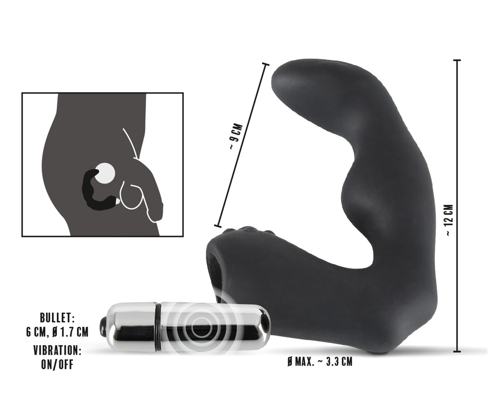 Gesamtlänge 12 cm, Einführtiefe 9 cm, Ø 2 bis 3,3 cm. Silikon mit PU-Beschichtung, ABS.