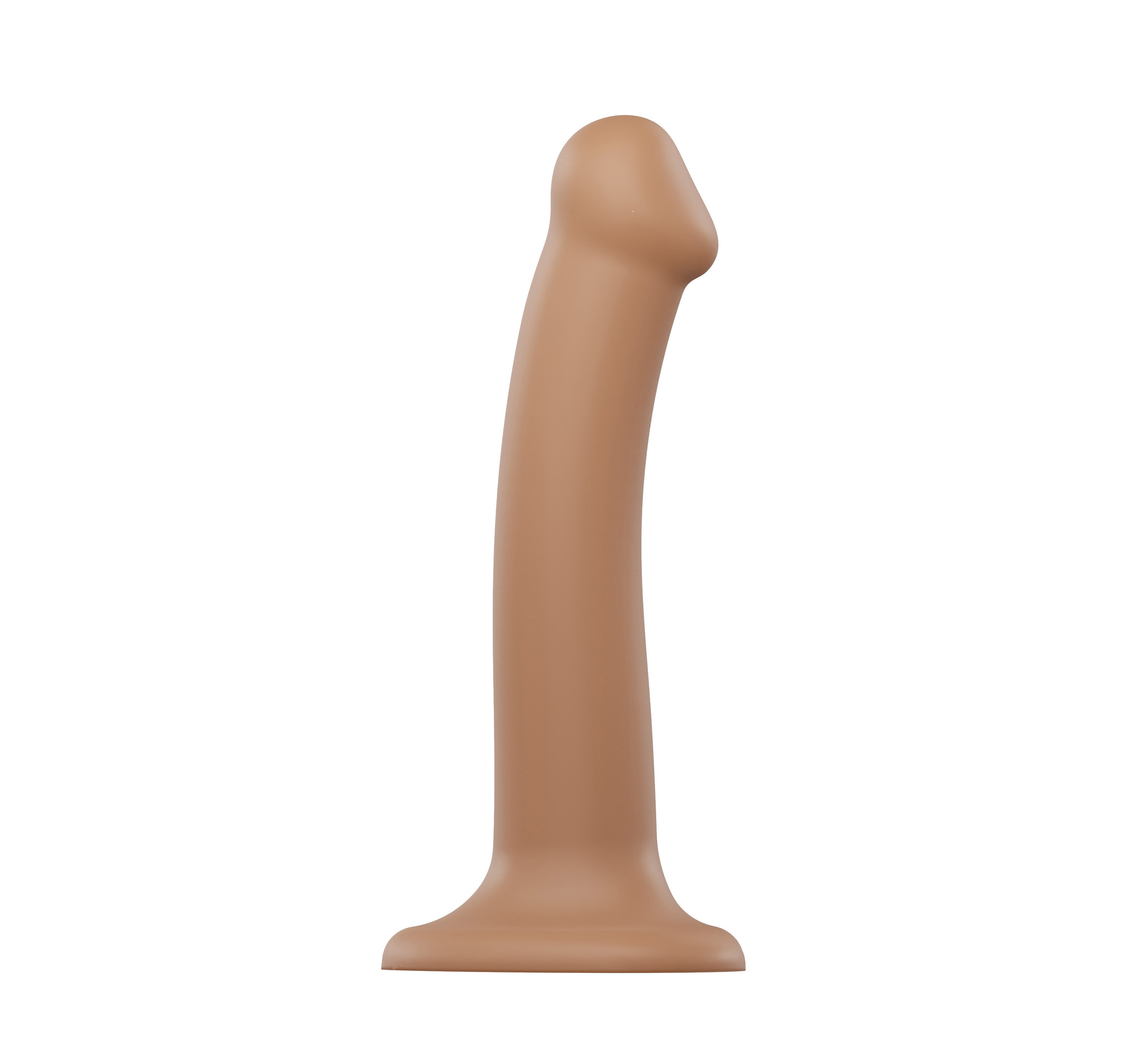 Mit dem Bandable Dildo von Strap-on-me kommt ein flexibler recht biegsamer Spielgefährte zu Dir, der für jede Menge Spielchen und Gelüste für Dich bereit ist. Im inneren befindet sich ein starrer Silikonkern, der viel Vergnügen bereitet. Dank des Saugnapfes kannst du ein freihändiges Solospiel erleben, dafür einfach nur auf eine glatte Oberfläche befestigen und schon kann es losgehen. Gerne kommt er auch mit Dir unter die Dusche (wasserdicht).