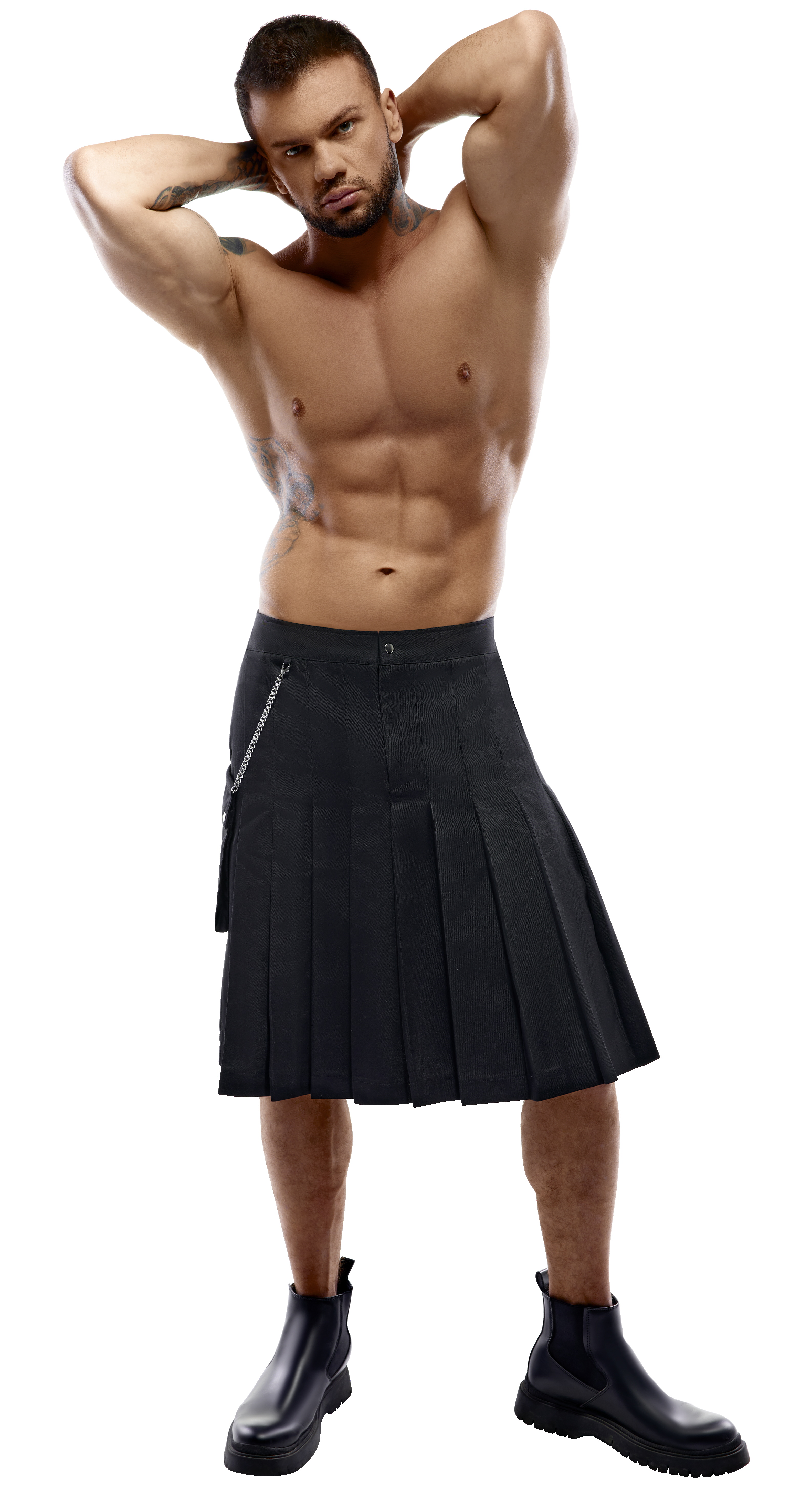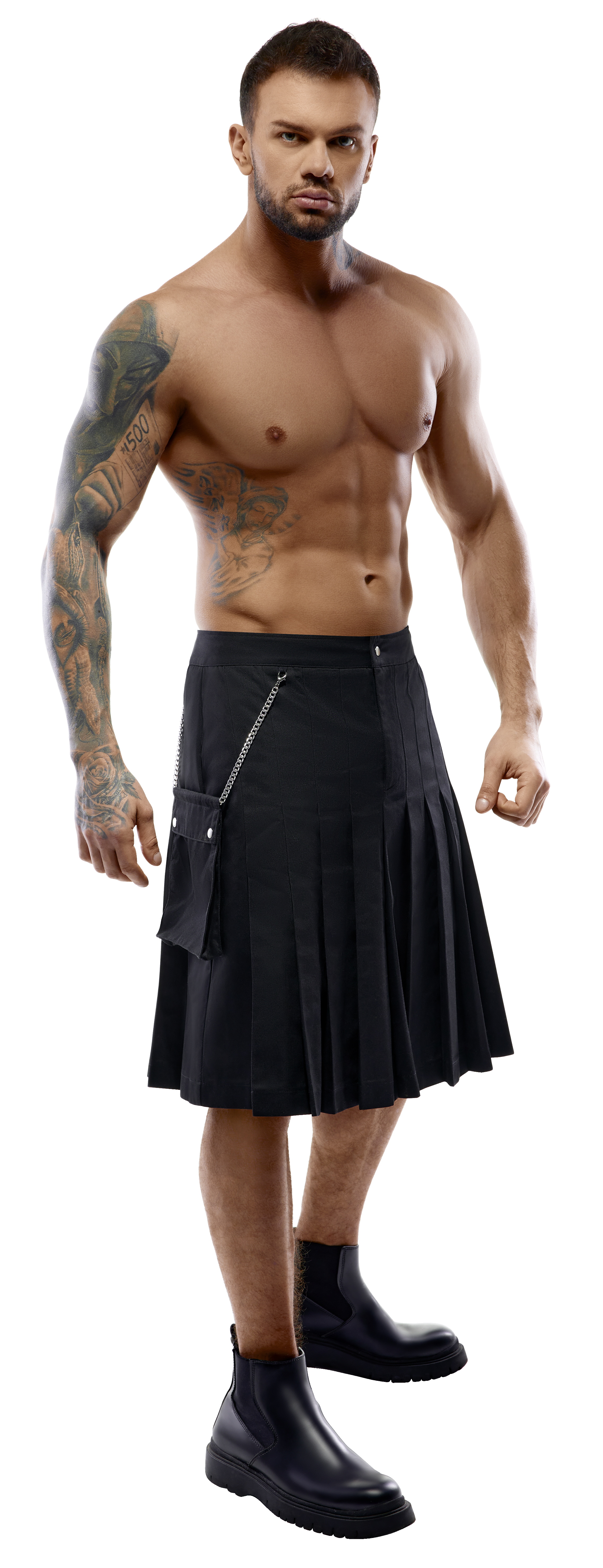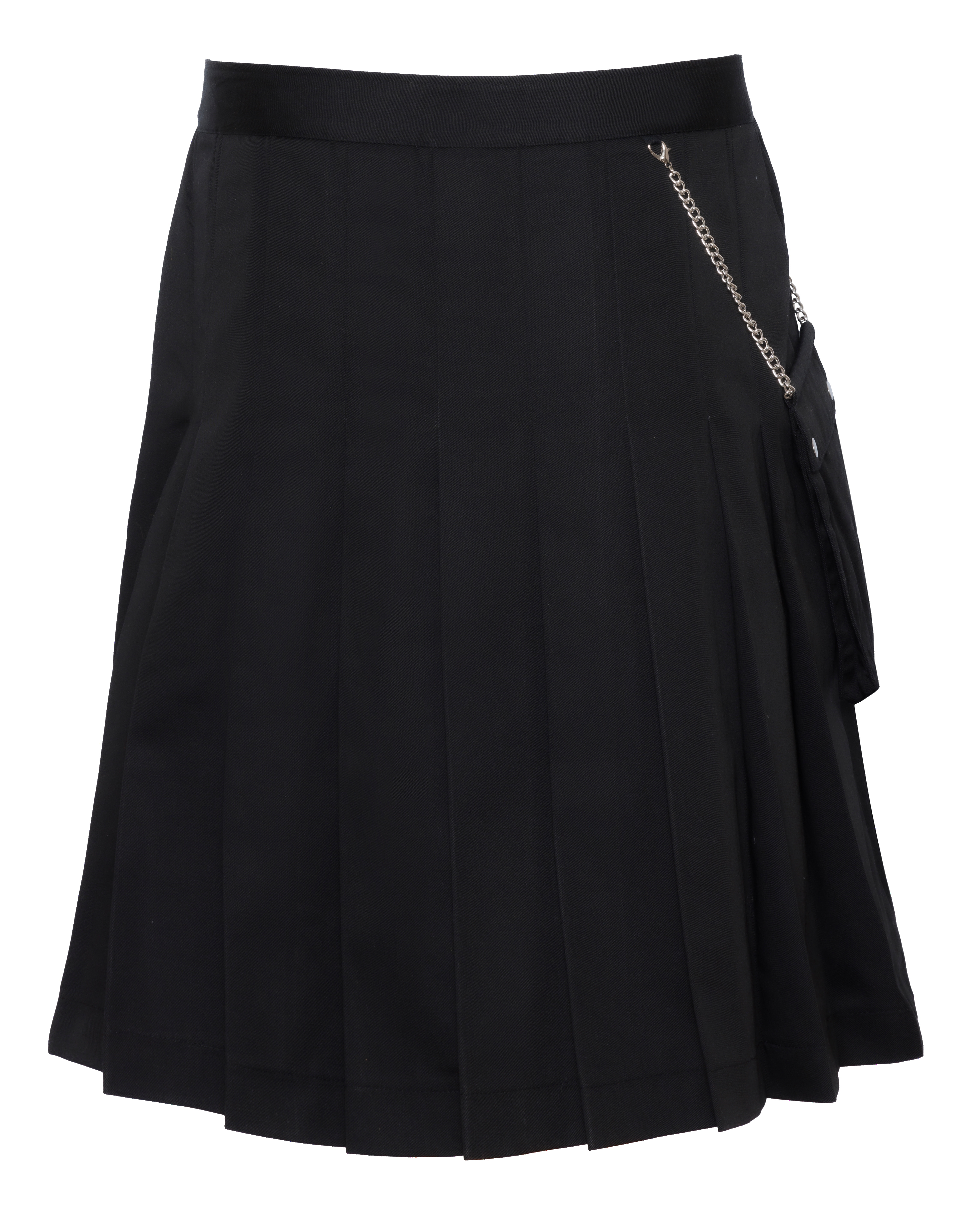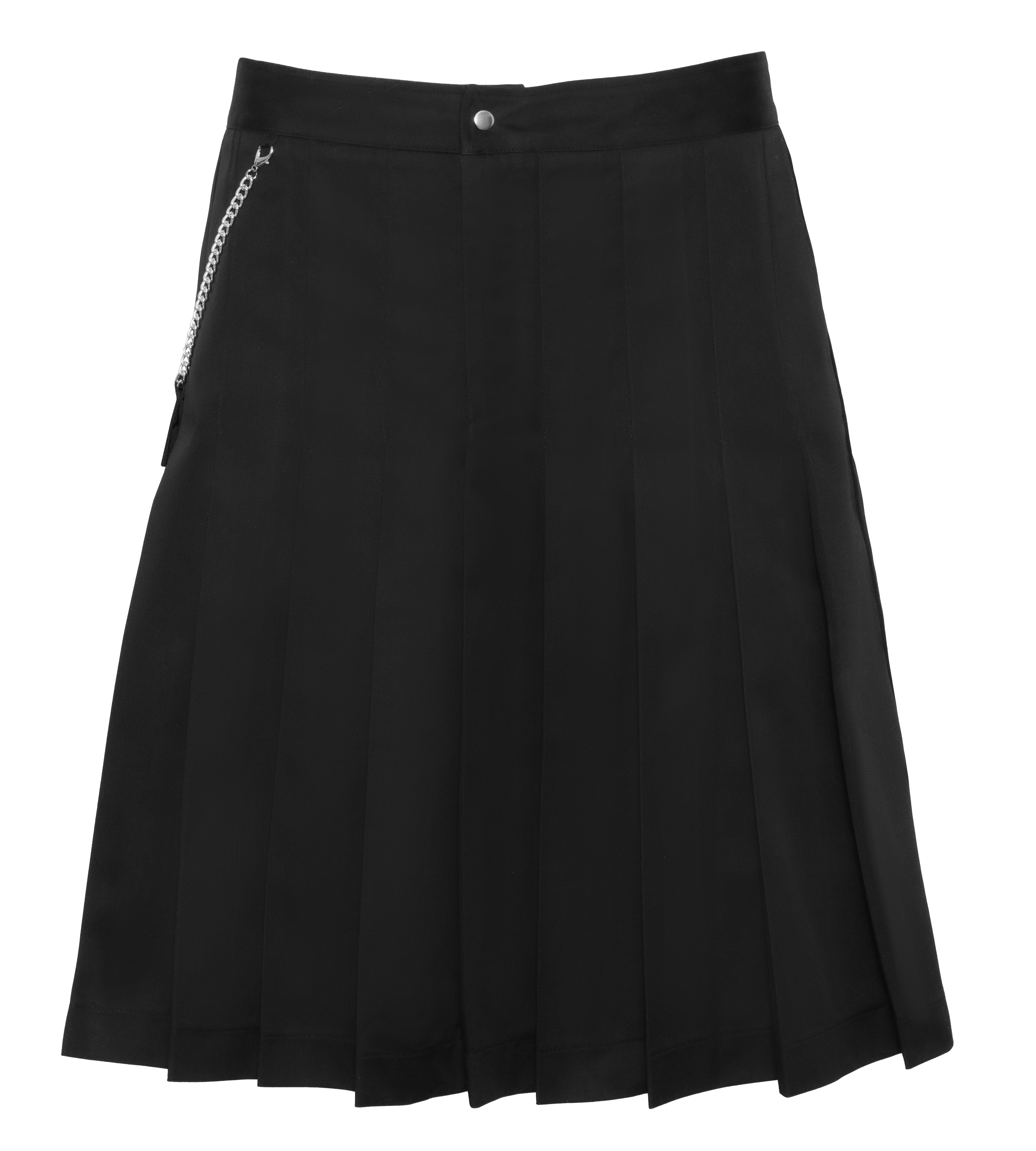 Mit diesem schwarzen Rock holst Du Dir ein modisches Statement in Deine Garderobe. Der Rock ist aus einem festen Webstoff gefertigt, der oben eng anliegt und dann in zahlreichen wunderschönen Falten fällt. Dieses verleiht dem Rock nicht nur einen maskulinen Kilt-Style, sondern sorgt auch für viel Bewegungsfreiheit und einen einzigartigen Look.