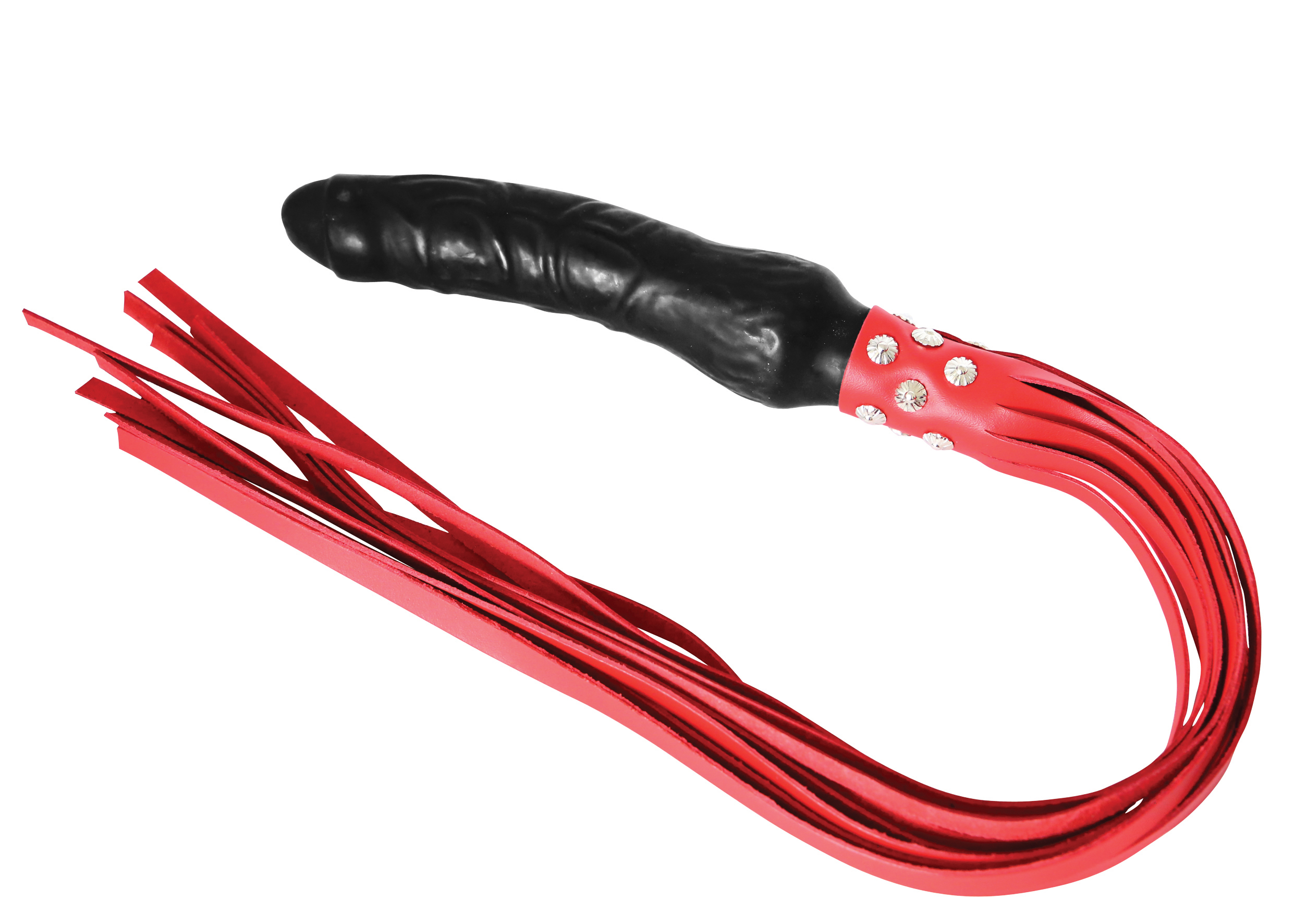 Latex Dildo Peitsche, Peitsche aus Leder (ca. 11 Riemen) und Latexgriff