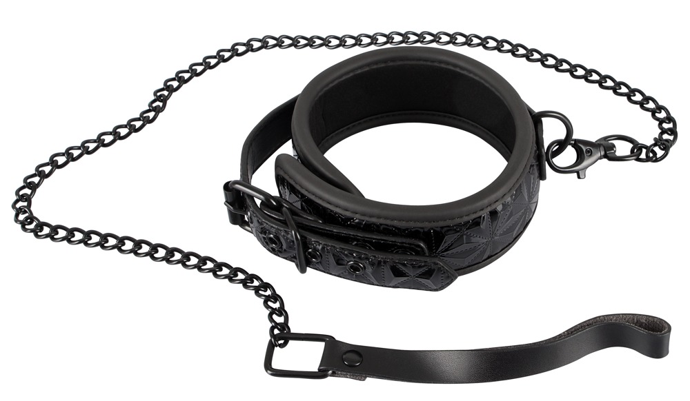 Schwarze, leicht gepolsterte Halsfessel von Bad Kitty mit geprägter Oberfläche in edler Diamantschliff-Optik.