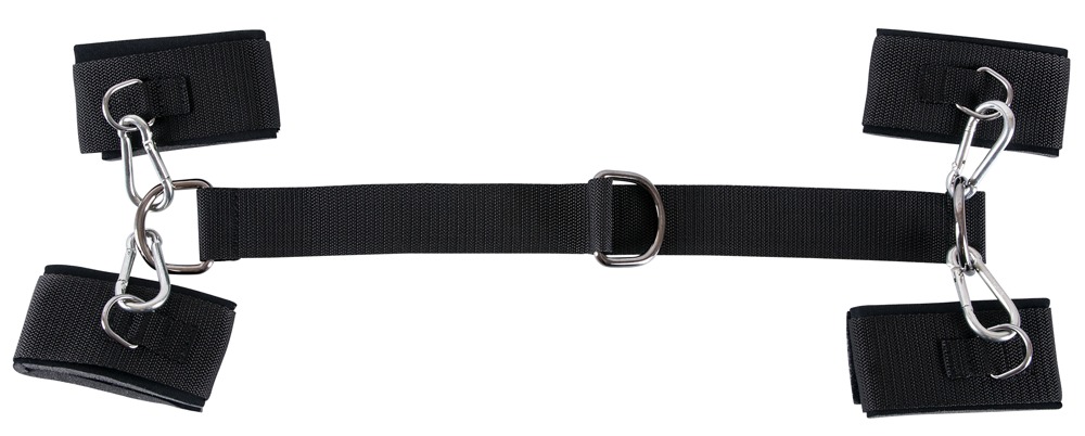 Wer die etwas gemeinere Variante bevorzugt, kann die Klettverschluss-Fesseln auch am Mittelring des 43 cm langen Verbindungsstranges einhaken...