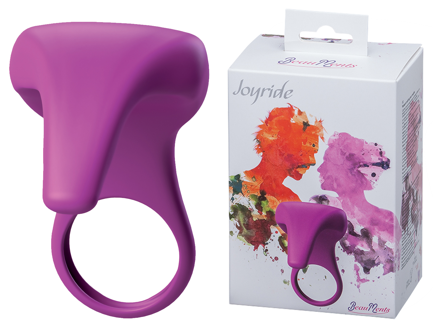 Vibro-Penisring Joyride von BeauMents mit Klitoris- bzw. Hodenstimulator, je nachdem wie herum der Ring am Penis getragen wird.