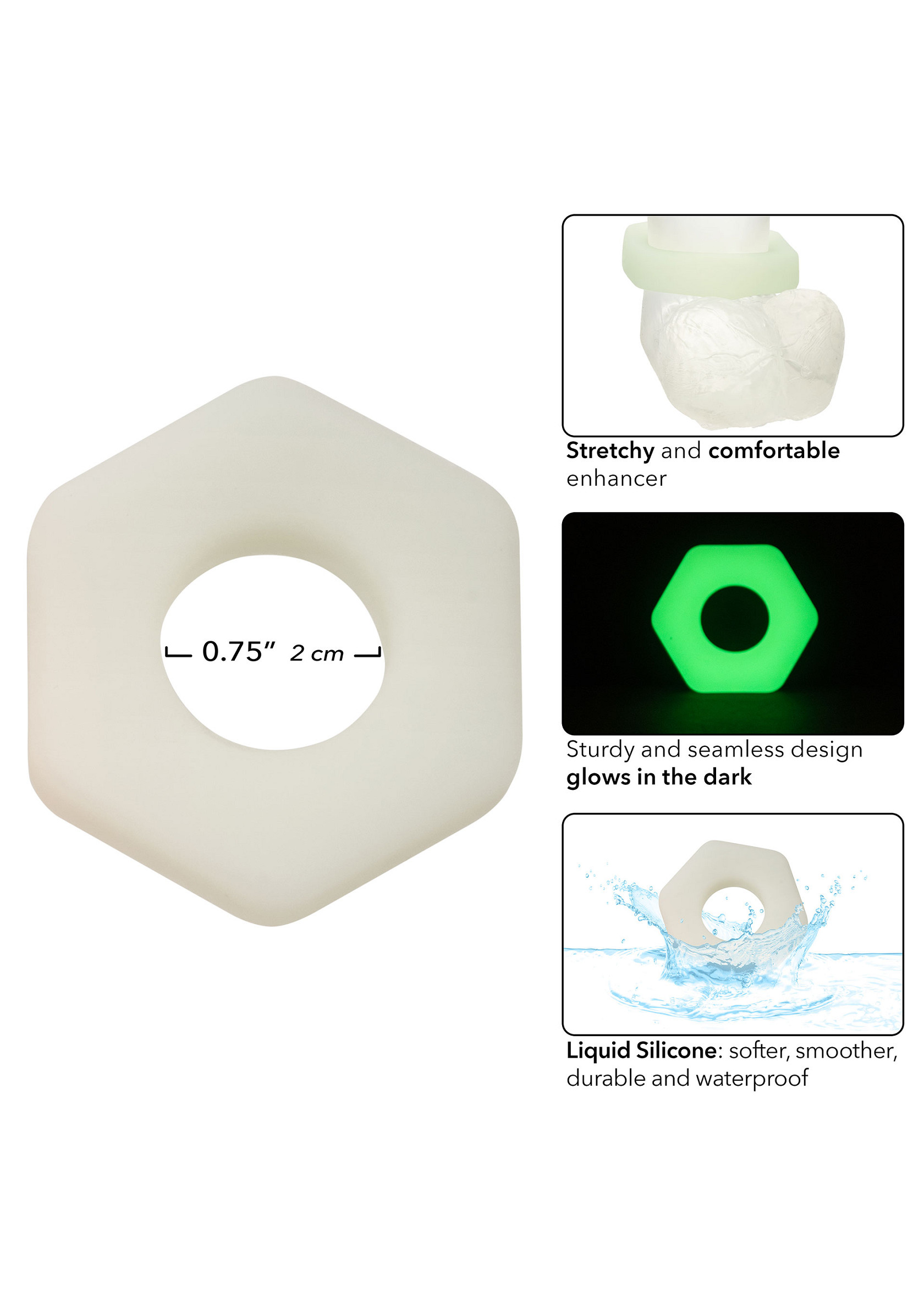 Produktinformationen "CalExotics Alpha Glow-In-The-Dark Liquid Silicone Prolong Sexagon Ring"