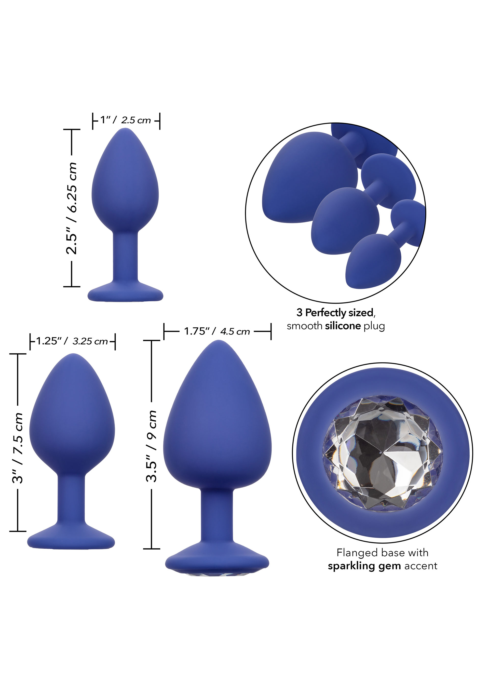 Das glamouröse Anal-Trainingsset enthält ein Set aus 3 abgestuften Analplugs mit Edelsteinbasis, mit denen Sie die leidenschaftliche anale Stimulation sicher und bequem steigern können.