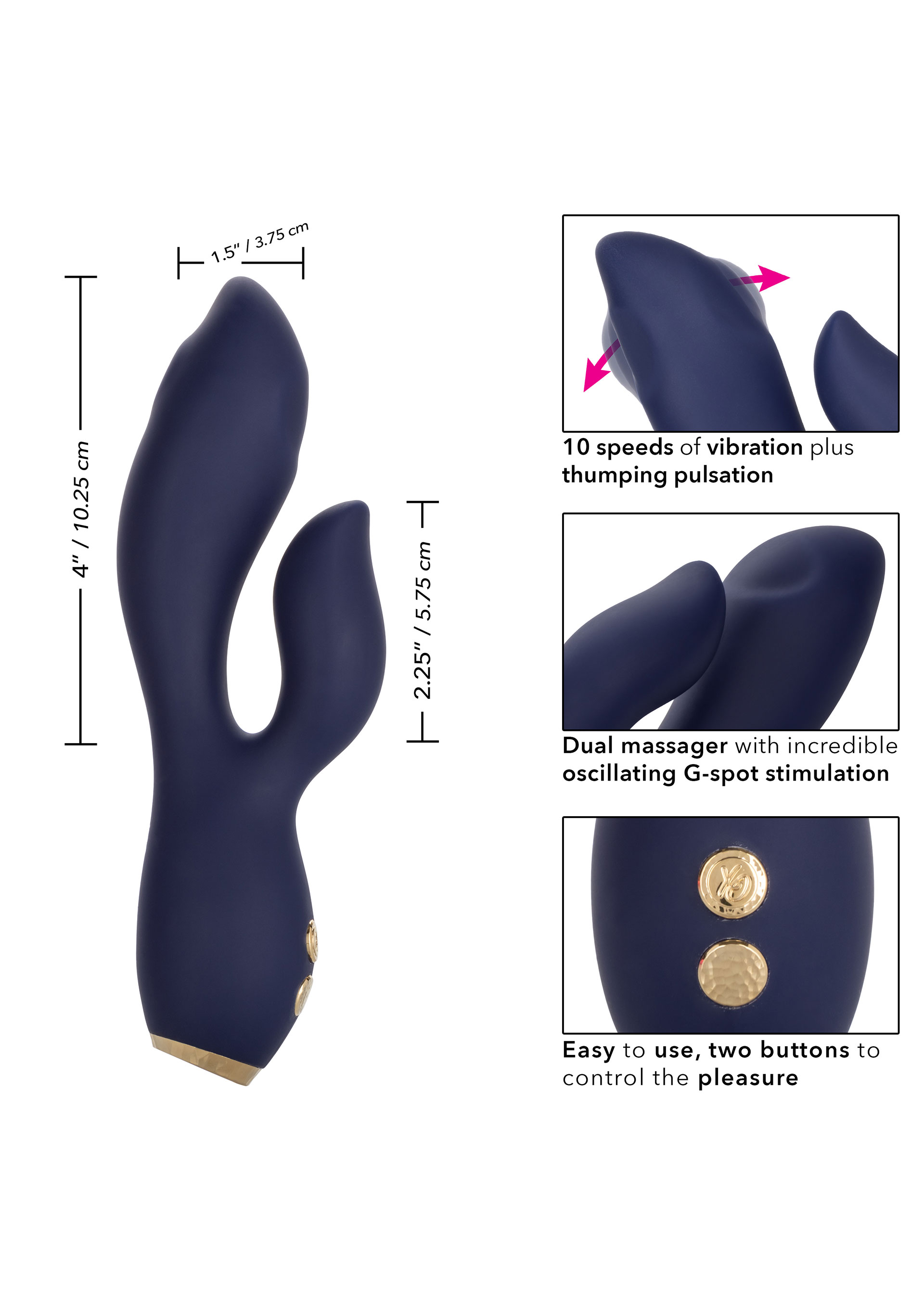 Der flexible Dual-Stimulator bietet leistungsstarke Dual-Motoren, 10 Vibrationsgeschwindigkeiten und einen unglaublich pochenden G-Punkt-Stimulator. Erfahren Sie eine erderschütternde G-Punkt-Stimulation, wie Sie sie noch nie zuvor erlebt haben, mit der Spitze des G-Stimulators und intensiven pochenden Pulsationen.