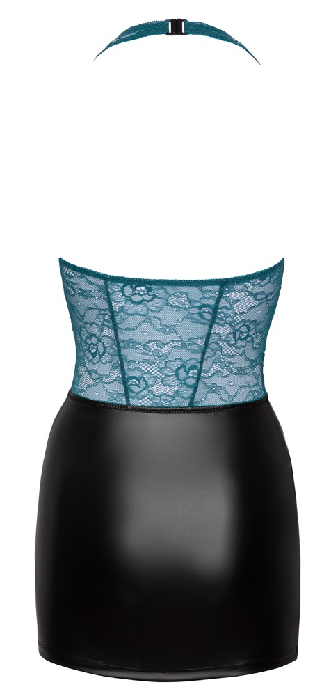 Verführerisch und stylisch kommt dieses Kleid von Cottelli zu Dir. Das kurze Kleid setzt sich zusammen aus dem Oberteil aus feiner petrolfabrener Spitze un dem Rockteil im edlen schwarzem Mattlook. Der Neckholder wurd durch einen Clipverschluss geöffnet. Mit seinem tiefgeschnittenen Dekolleté sieht es auf alle Fälle alle Blicke auf Dich - wobei 3 roségoldfarbene Ringe und Stretchbänder alles schön zusammenhalten.