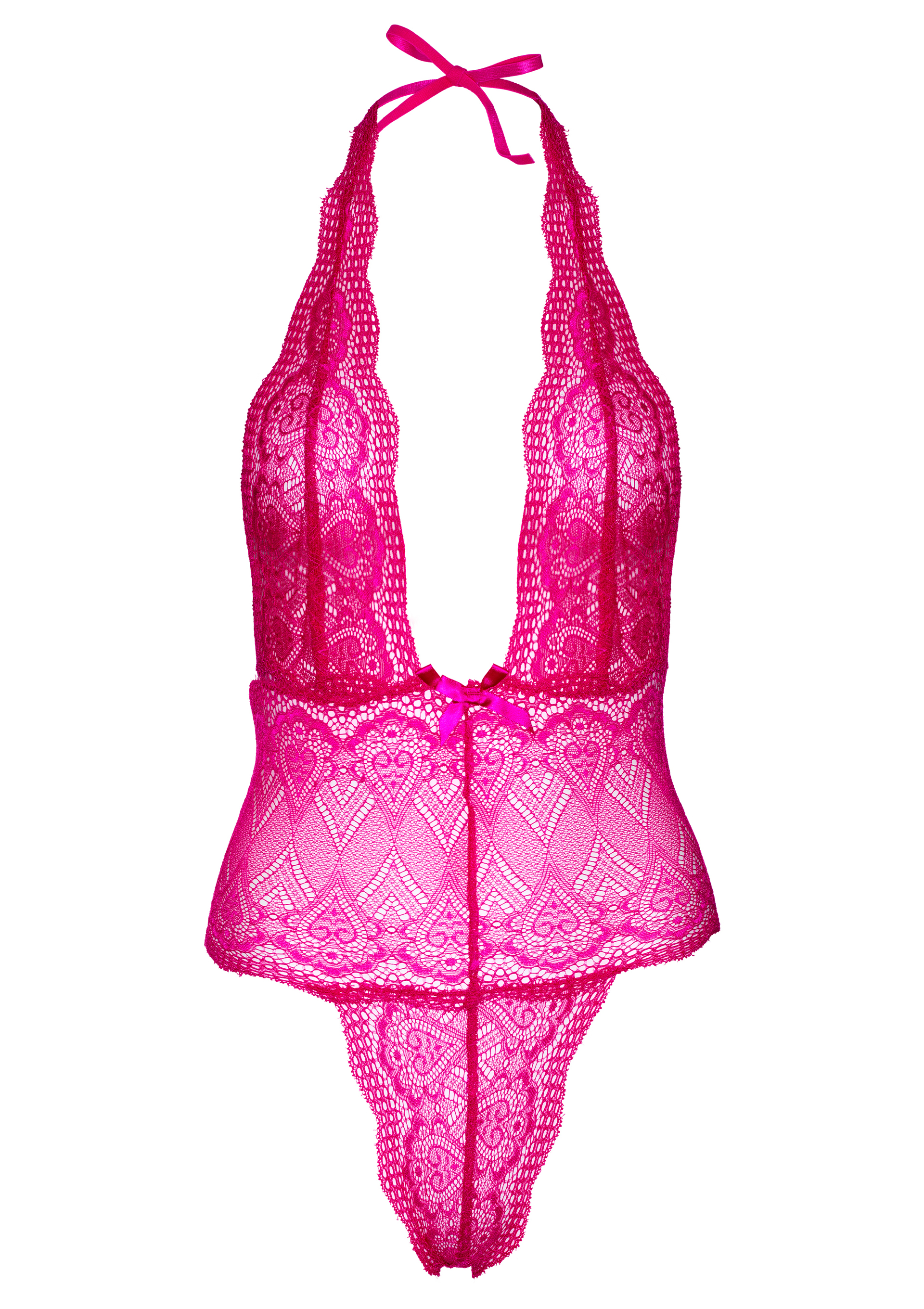 Heart Lace Teddy - Tief geschnittener Body mit sexy offenem Rücken. Feminine Spitze mit Herzdesign, Satinschleifendetails und Gummibändern für beste Passform und Komfort.