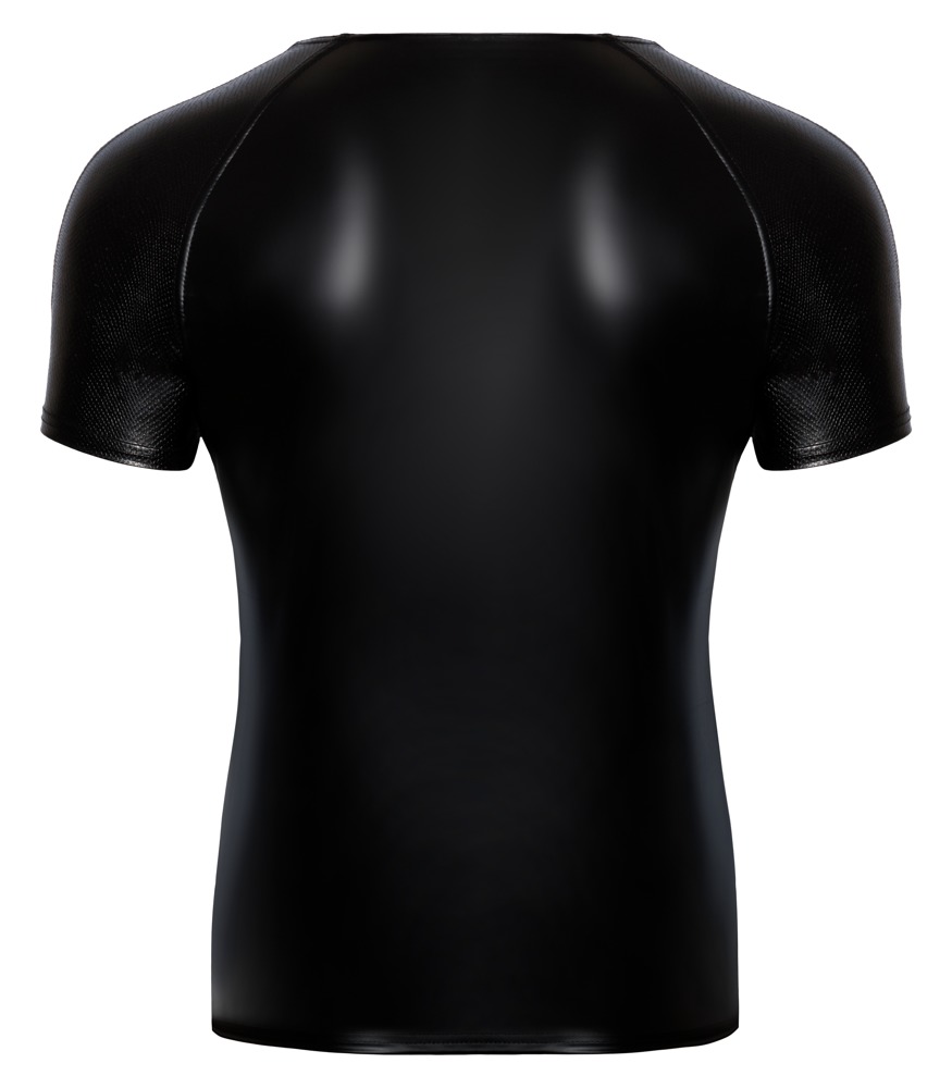 Entdecke das betonende Kurzarm-Shirt von Noir im faszinierenden Powerwetlook! Mit seinem schwarzen, matt glänzenden Stoff verleiht es Dir eine schlichte und doch extravageante Ausstrahlung. Die kurzen Ärmel und die Schulterpartie sind in einer atemberaubenden Schlangenhaut-Optik gehalten, die für einen schillernden Effekt sorgen.