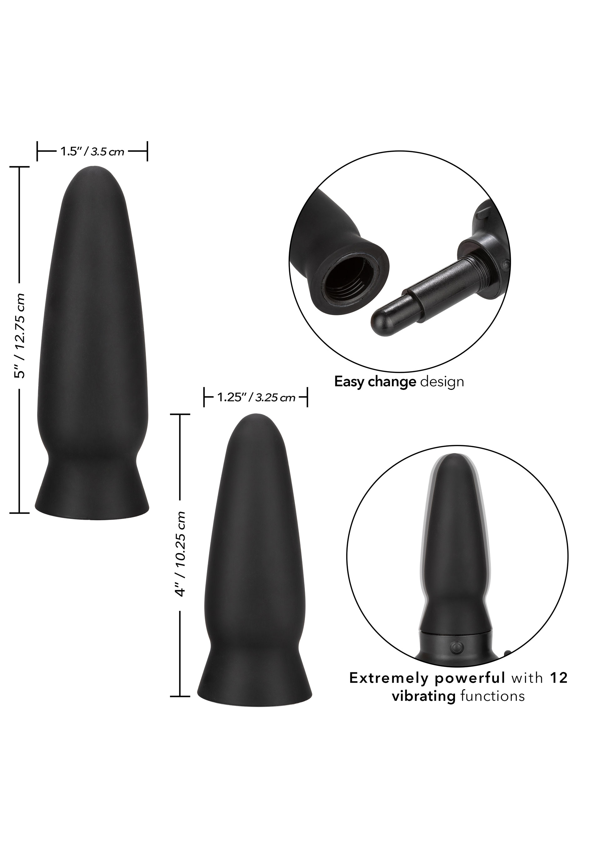 Das Premium-Analsonden-Set enthält eine vibrierende Basis und 2 austauschbare Sondenköpfe für ein vollständig anpassbares Erlebnis. Das austauschbare Design macht es einfach, die Stimulation zu erhöhen oder zu verringern, während die 12 Vibrationsfunktionen Stimulation auf Knopfdruck liefern. Die leistungsstarken Vibrationsmotoren im Schaft und in der Basis sorgen für eine grollende Hintertür-Stimulation, während sich die konturierte Basis und der flexible Körper selbst in Ihren X-bewerteten Momenten biegen und bewegen.