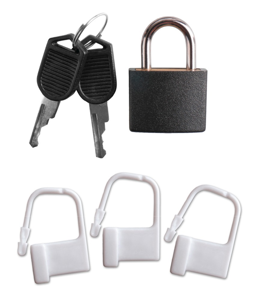 Wer noch nicht ganz so hart im Nehmen ist, der nutzt einfach eines der 3 beiliegenden Einmal-Schlössern aus Plastik.