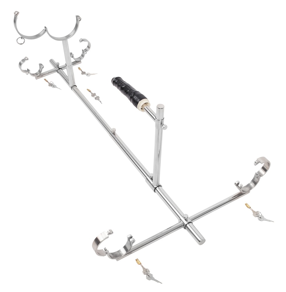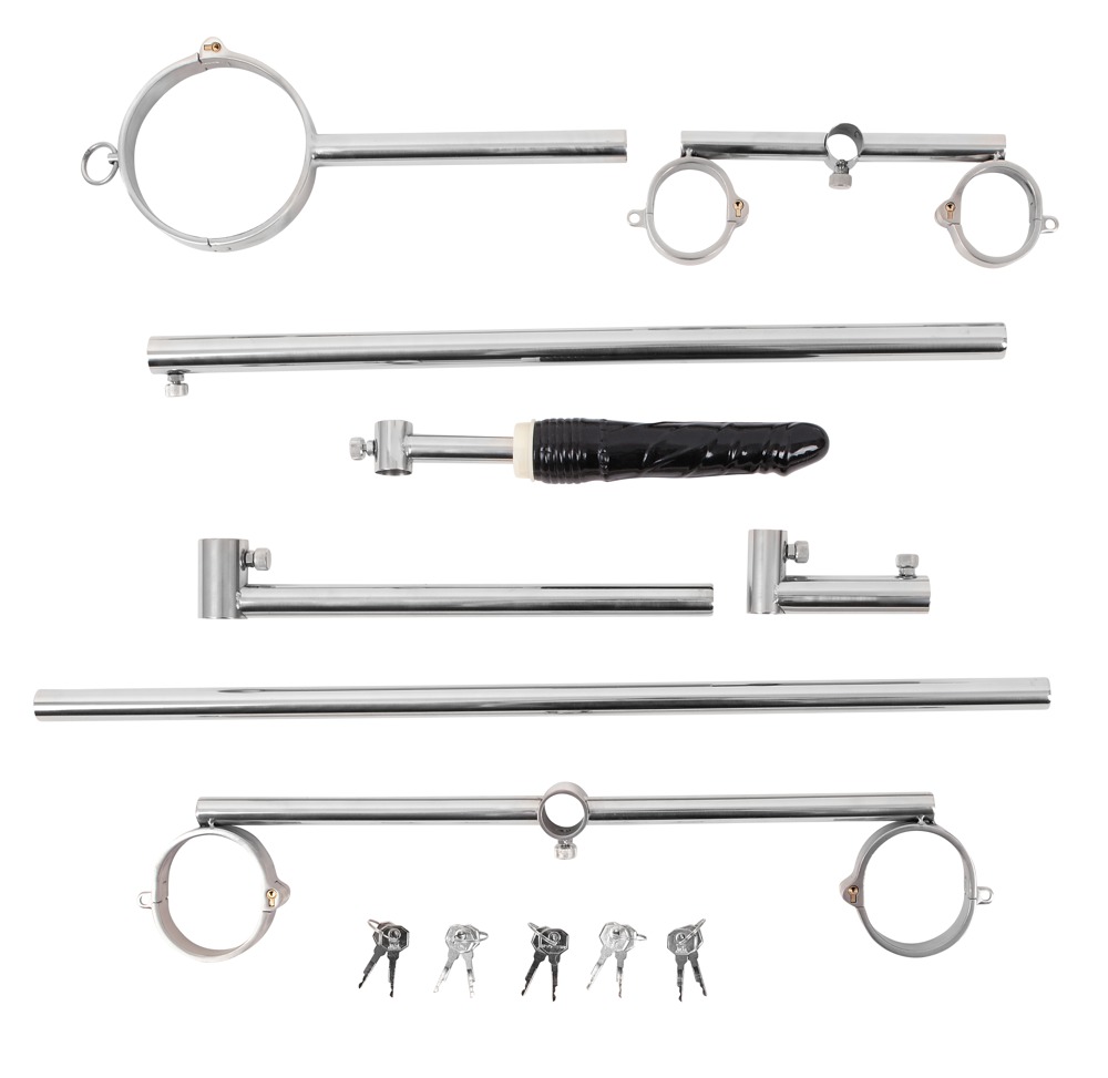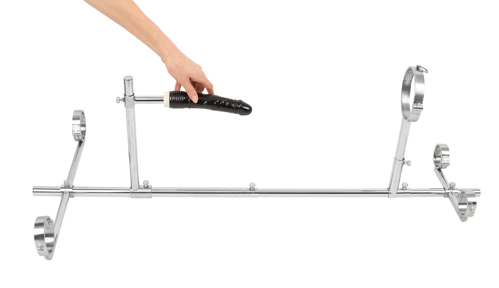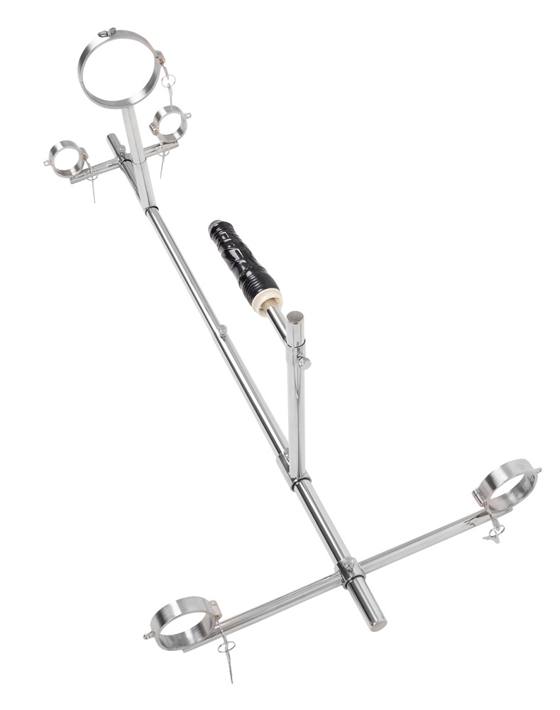 Mit diesem hochwertigen, stabilen Bodenpranger von fetish collection aus Edelstahl wird der/die devote Partner/in für raffinierte Spielereien abseits des Alltäglichen in eine knieende Körperposition „gezwungen“. Die Handgelenke, Fußgelenke und der Hals werden mit Schellen an dem Bodengestell fixiert. Weiteres Zubehör ist die Halterung für den beiliegenden Dildo, die variabel hinter der/dem knieenden Sub arretiert werden kann. Dazu ist der Bodenpranger leicht zusammen- und wieder auseinanderzubauen und zu verstauen.