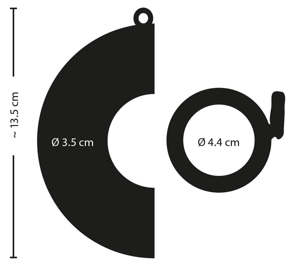 Gesamtlänge 13,5 cm, Käfiglänge 12 cm, Ø 3,5 cm.
