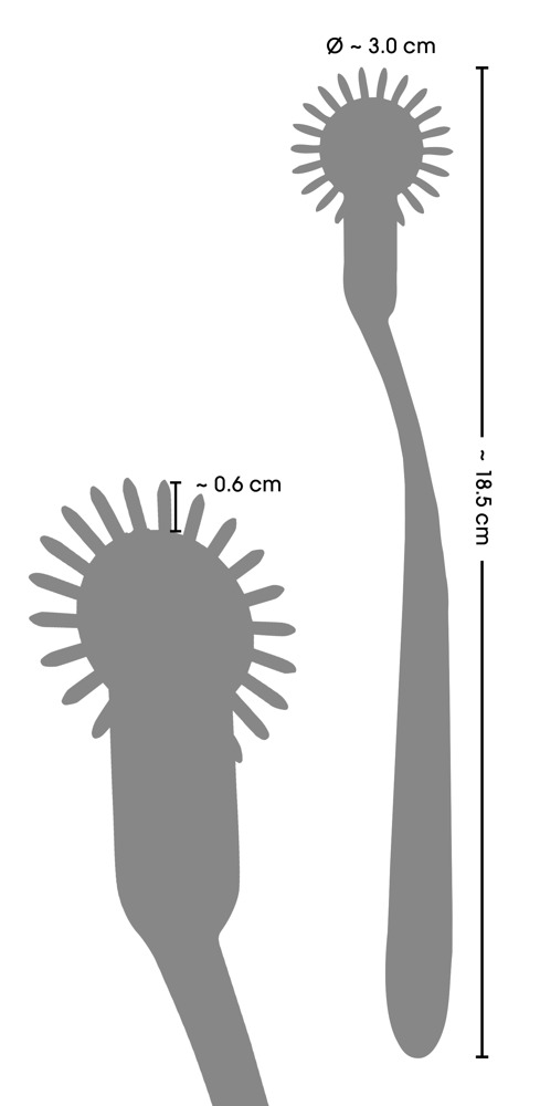 Gesamtlänge 18,5 cm, Rädchen-Ø 3 cm, Nadelspitzen 6 mm lang
