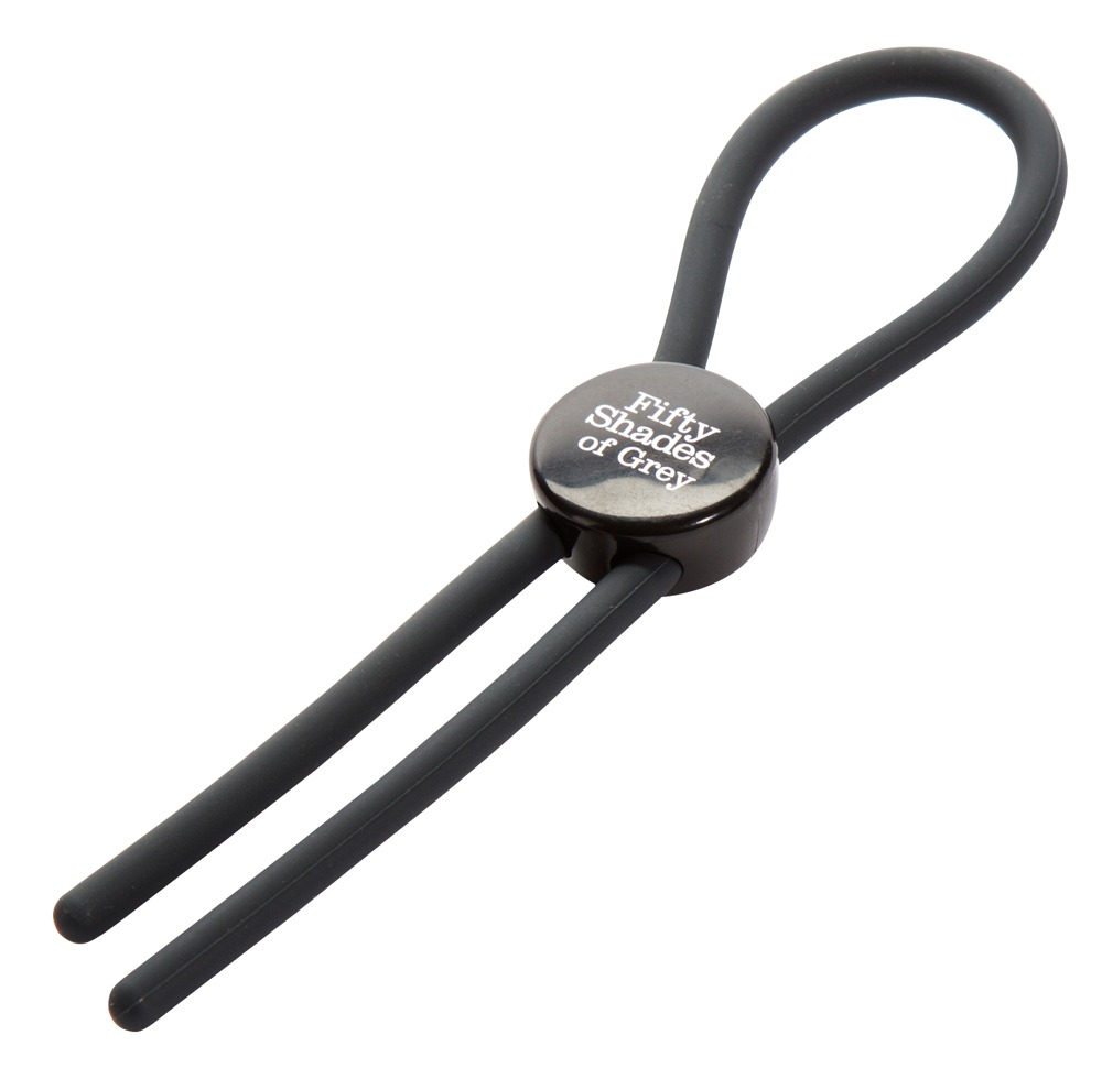 Graue Penisschlaufe mit Schiebeverschluss, mit dem der Durchmesser individuell eingestellt werden kann - auch während des Sex. Gesamtlänge ca. 29 cm. Material: Silikon.