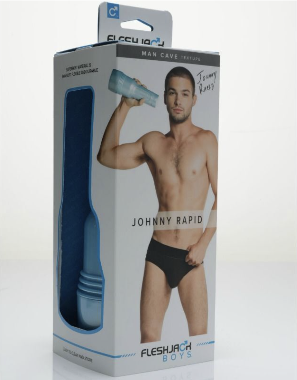 Masturbator Johnny Rapid Man Cave von Fleshlight aus der Serie Felshjack Boys in einer puderblauen Fleshjack-Hülle.