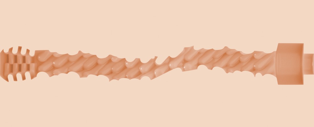 Im Inneren des engen, dehnbaren Lustkanals sorgen unterschiedlich große Noppen und Rillenstrukturen für intensive Stimulationen.
