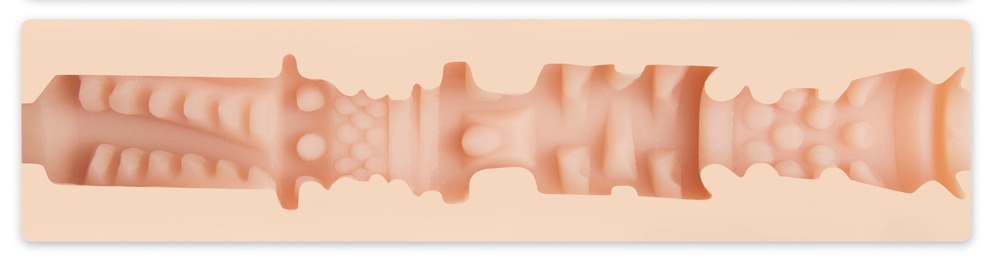 Als besonders prickelnd erweist sich dabei nicht nur das samtig-weiche Hautgefühl, sondern auch der dehnbare Lusttunnel, der mit teils glatter, teils gewellter Reizstruktur lockt und über unterschiedliche Verengungen verfügt.