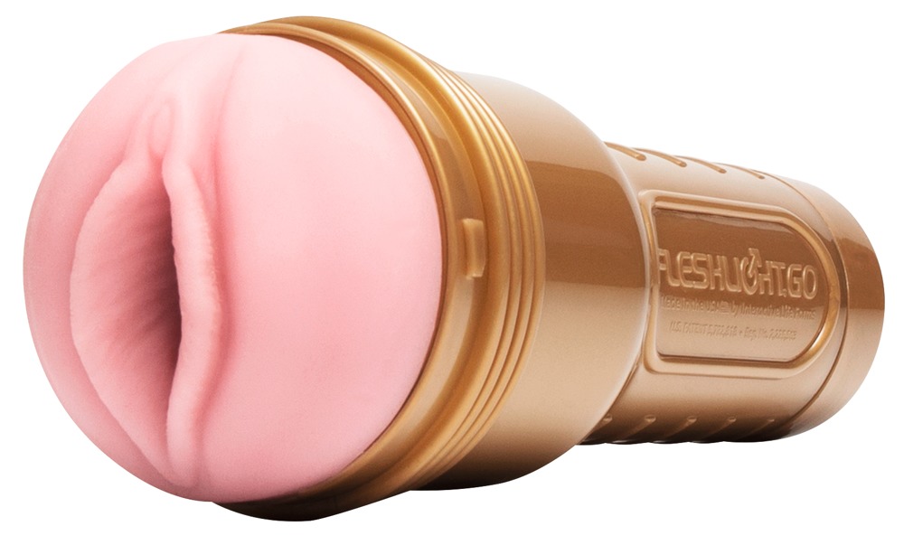 Handlicher Masturbator Go Stamina Training Unit Lady von Fleshlight in diskreter goldener Taschenlampen-Optik ideal auch für unterwegs.