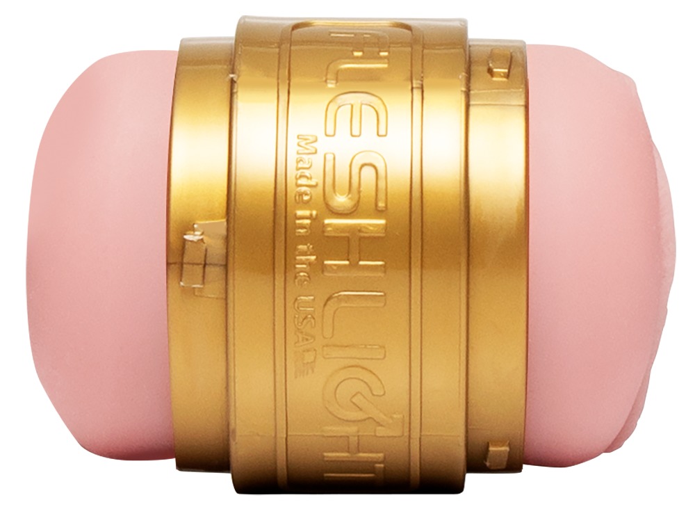 Der klein und handlicher Masturbator Quickshot Stamina Lady & Butt von Fleshlight in diskreter goldener Taschenlampen-Optik ist der ideale Begleiter für unterwegs. Mit seiner Gesamtlänge von 11 cm passt er in jede Tasche und kannt so auch auf Reisen für lostvolle Solospiel sorgen. Er ist beidseitig benutzbar, d.h. auf der einen Seite befindet sich die Vagina ubd auf der anderen Seite der Anus, so ist für reichlich Abwechslung gesort.