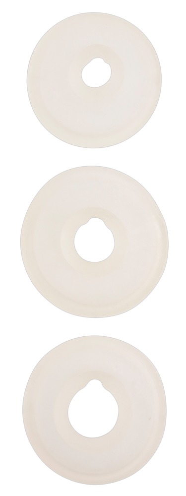 3er-Set transparente Penismanschetten mit seidig weicher Textur. Mit unterschiedlichen Durchmessern passend für jede Penisgröße. Auch ist ein stufenweises Potenztraining damit möglich. Die ergonomische Einkerbung sorgt für einen optimalen Tragekomfort. Kompatibel mit den FRÖHLE Erektionspumpen und damit ideal bei Potenzproblemen.