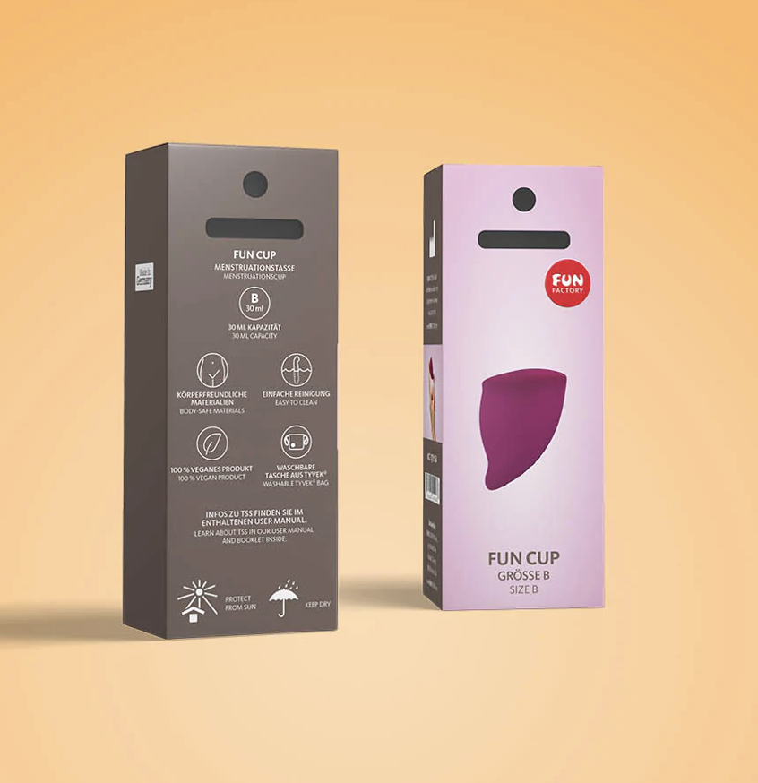 Mit der Mensturationstasse Fun Cup von Fun Factory kannst Du Dir das Geld für Tampons oder Binden sparen. Sie ist wiederverwendbar und leicht zu reinigen (zwischen zwei Zyklen solltst Du sie mind. einmal auskochen). Es ist einfach sie zu händeln: Die Öffnung einfach zusammendrücken und dann einsetzen. Sie entfaltet sich dann im Inneren wieder von selbst. Sie hält 4-6 mal soviel wie ein herkommliches Tampon. Mit ihr ist es kein Problem, Oralsex oder leichte Penetrationen zu genießen.