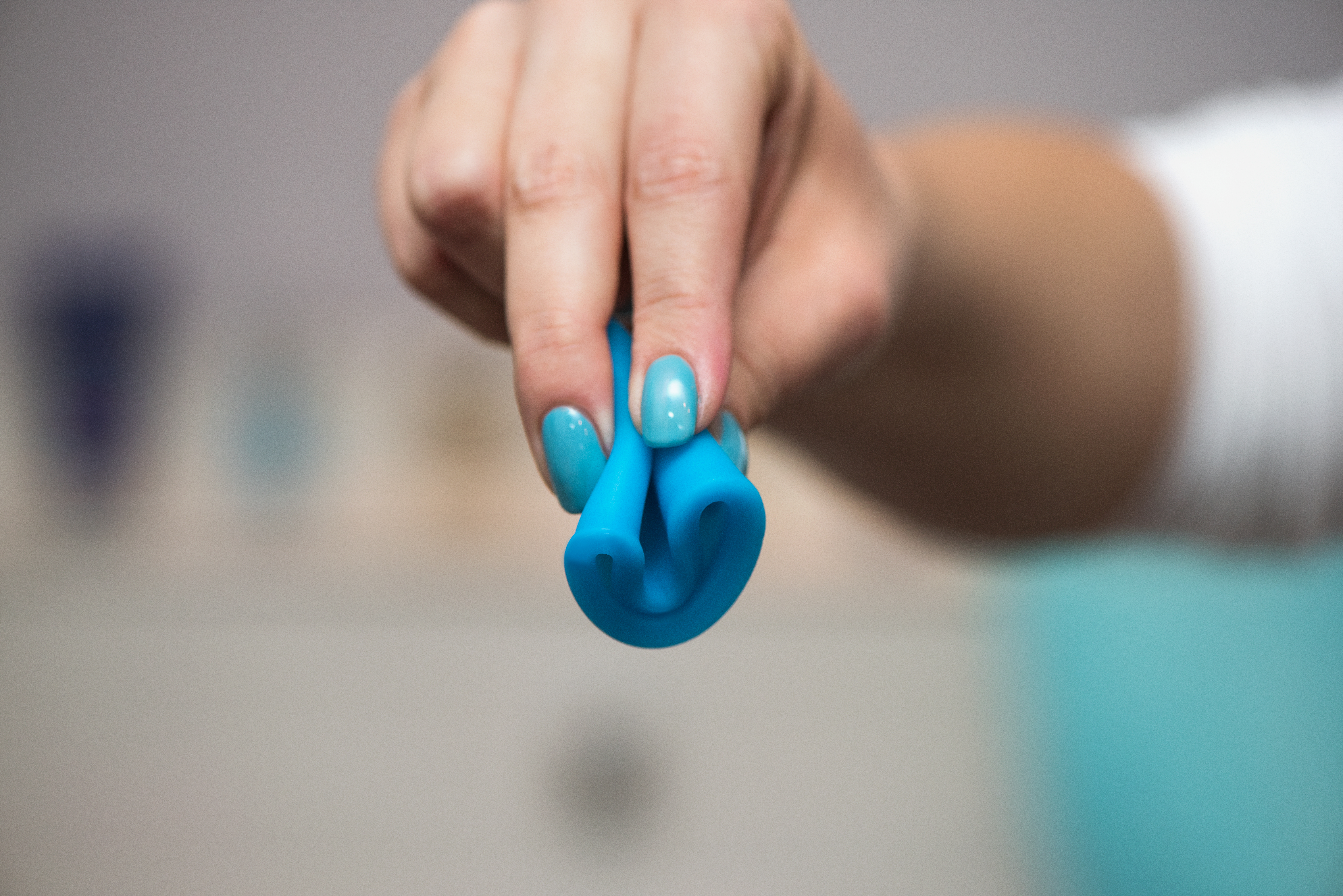 Size A für leichtere Blutungen und Menschen mit einem eher kurzen Vaginalkanal. Hier ist das Silikon etwas fester gearbeitet.