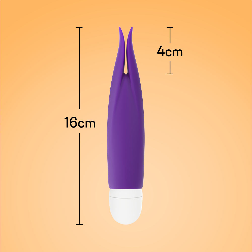 Der handliche Klitoris-Vibrator punktet mit gleich zwei samtig flatternden Silikonspitzen, die das Gefühl der Vibration sogar noch steigern.