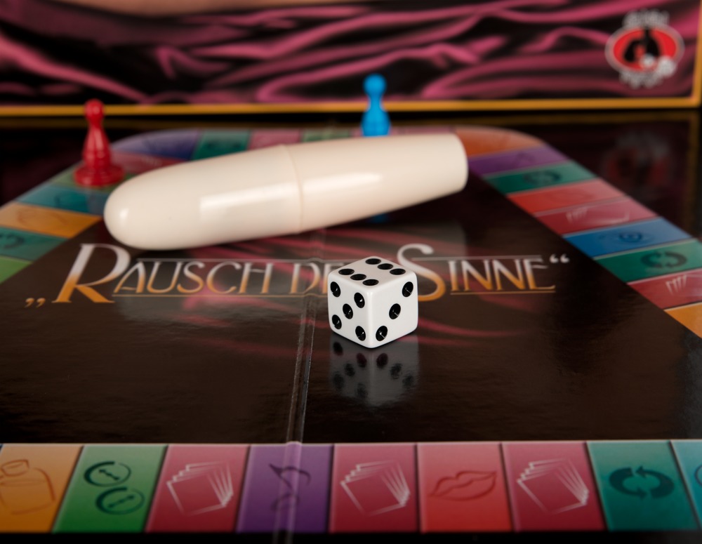 Inhalt: Spielanleitung, Spielbrett mit 2 Drehrädchen, 2 Spiel-Figuren, 1 Würfel, Erotik-Massage-Öl, Power-Vibrator (inkl. Batterien), 30 Karten, 30 Coupons, Sanduhr, Schreibblock mit 2 Bleistiften, Augenmaske.