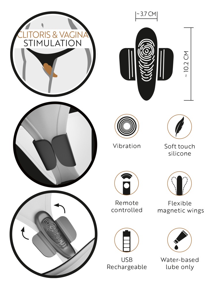 Ideal geformter, reizstrukturierter Panty Vibrator von GoGasm mit Magnetflügeln zur rutschfesten Befestigung in jedem Slip.