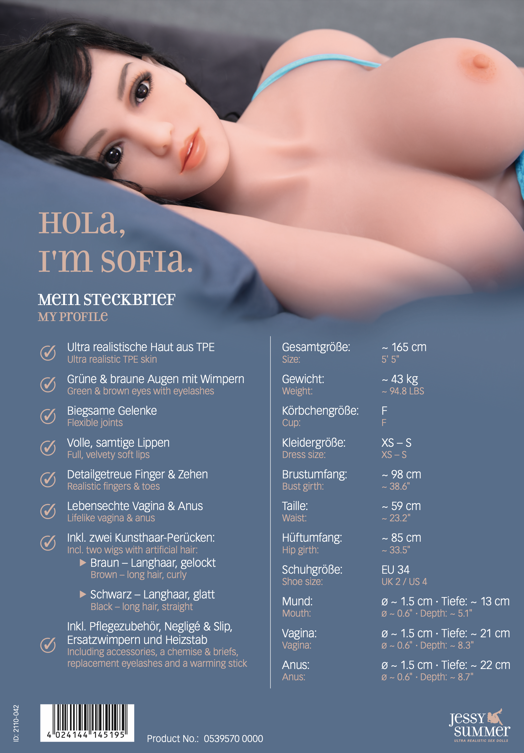 ...das könnten die Worte von der Sofia sein, der lebensgroße Liebespuppe von Jessy Summer. Sofia kommt mit einer Lebensgröße von 1,65 m zu Dir und ist von Kopf bis Fuß beweglich. Lehnst du die an der Wand an, zeigt sie Dir auch, dass sie stehen kann.