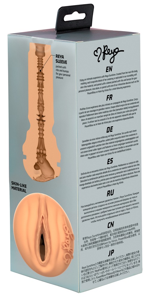 Erleben Sie unvergleichliches Vergnügen mit dem Feel Reya Sunshine Masturbator von Kiiroo – eine originalgetreue Nachbildung der berühmten Erotikdarstellerin Reya Sunshine. Die detailgetreu abgeformte Vulva und die abwechslungsreiche Stimulationsstruktur im Inneren sorgen für ein intensives und realistisches Lustgefühl.