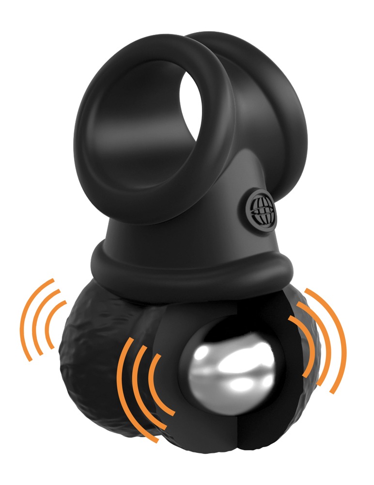 Die lebensecht nachgebildeten Hoden aus Dual Density-Silikonmaterial haben eine weiche hautähnliche Oberfläche und sind innen mit 2 gewichtigen Vibrokugeln bestückt. Bei jedem Stoß schwingen die vibrierenden Hoden realistisch mit und schlägeln erregend gegen die Intimzone.
