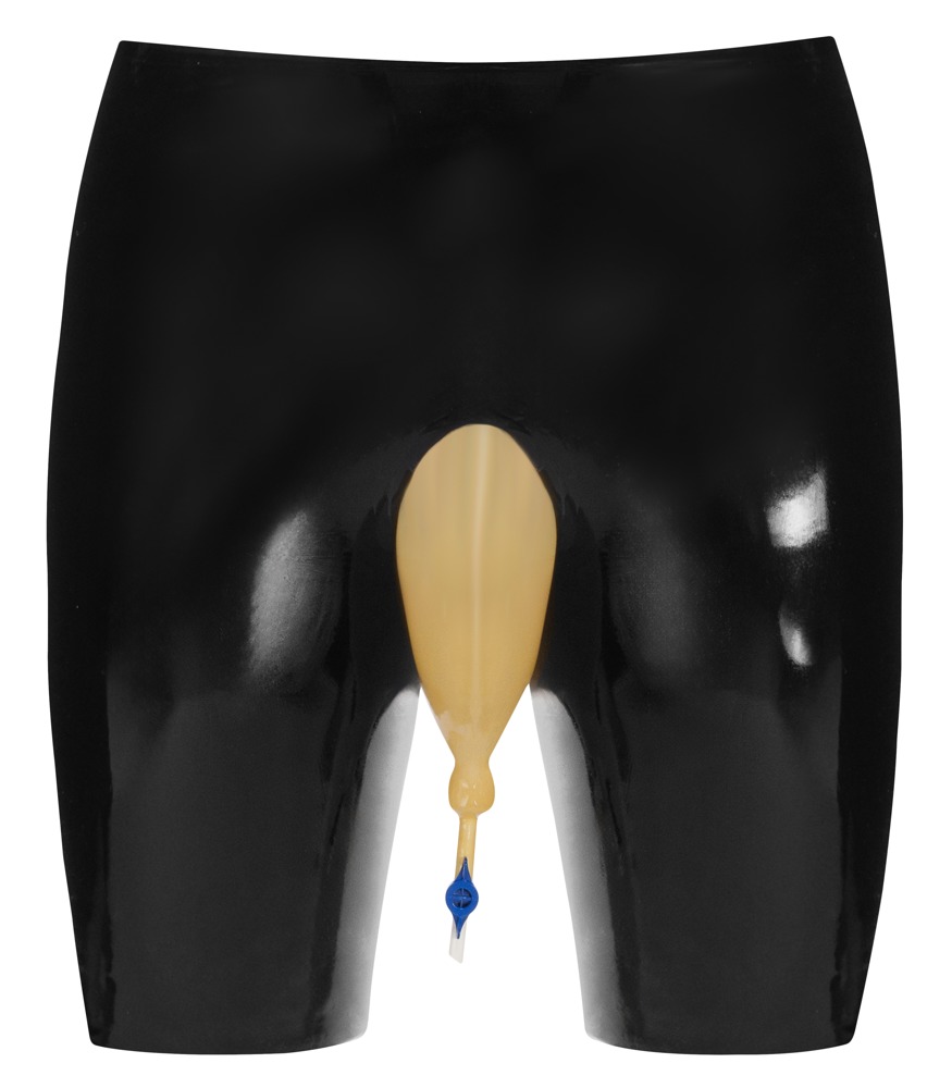 Latex-Urin-Radlerpants mit Urinbeutel & Ablasshahn