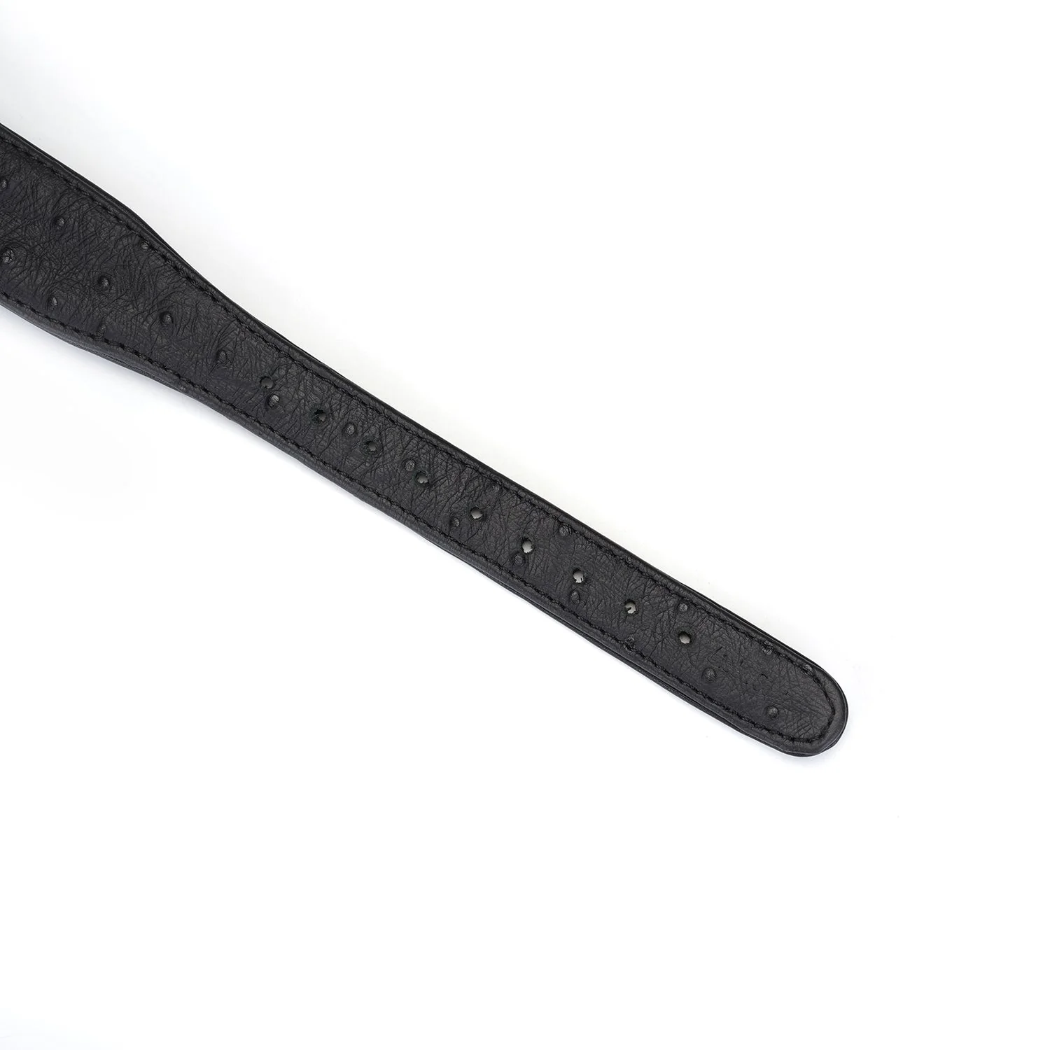 Erlebe ein intensives und luxuriöses Gefühl, während du deinen Partner mit dieser fesselnden Ledermanschette mit Straußenhautmuster umgibst. Der große O-Ring bietet unzählige Möglichkeiten für aufregende Spiele und ermöglicht dir, deine Fantansien frei auszuleben.