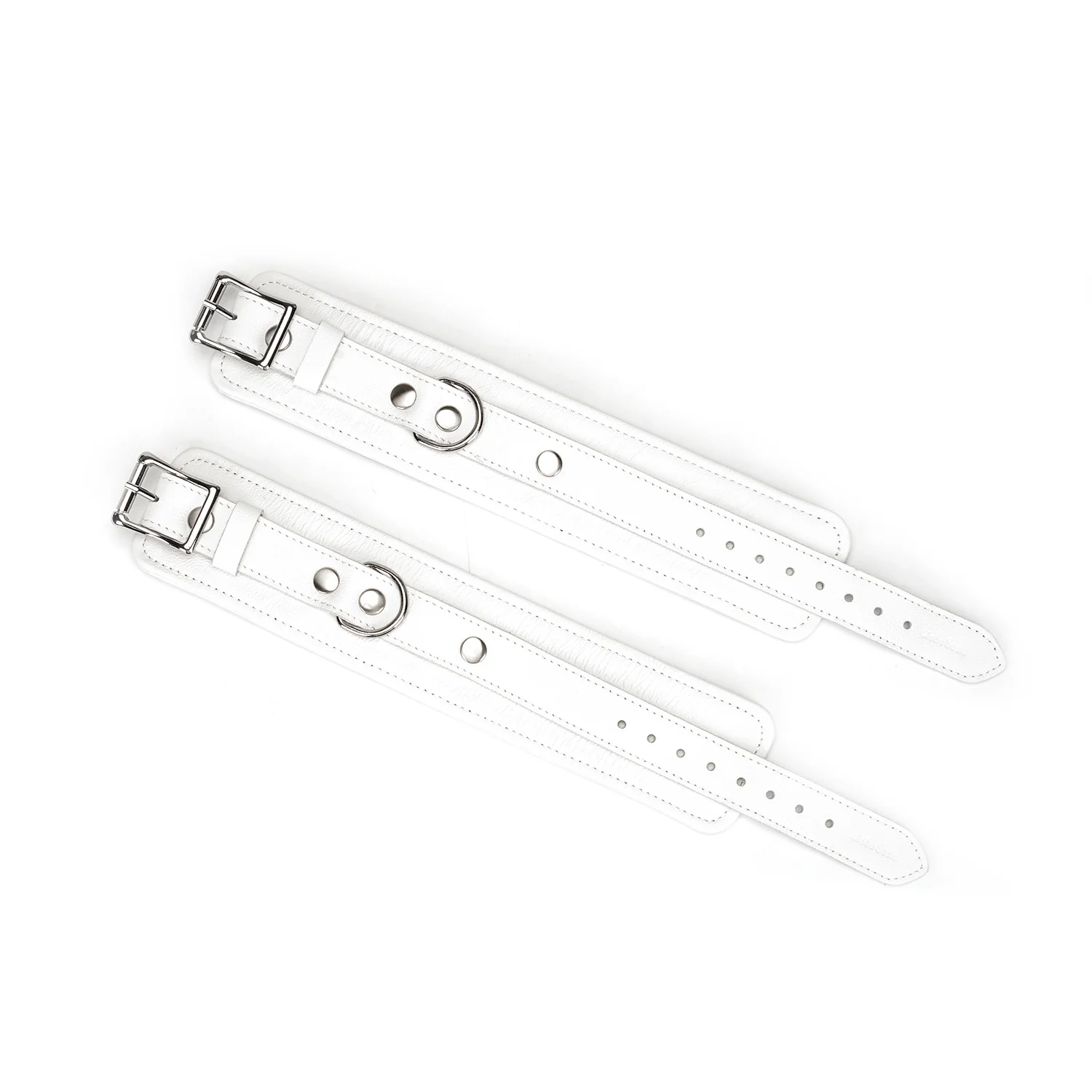 Diese Knöchelmanschetten aus weißem Leder mit silbernem Metall aus der Reihe Fuji White von Liebe Seele sind ein absolutes Must-Have. Das echte, aromatische Soft-Touch-Leder verleiht ihnen Robustheit und eine edle Ausstrahlung in dieser Farbkombination. Die weißen Riemen und die Manschetten, verziert mit glitzernden silberfarbenen Metallbeschlägen, sorgen für einen verführerisch kultivierten Look.
