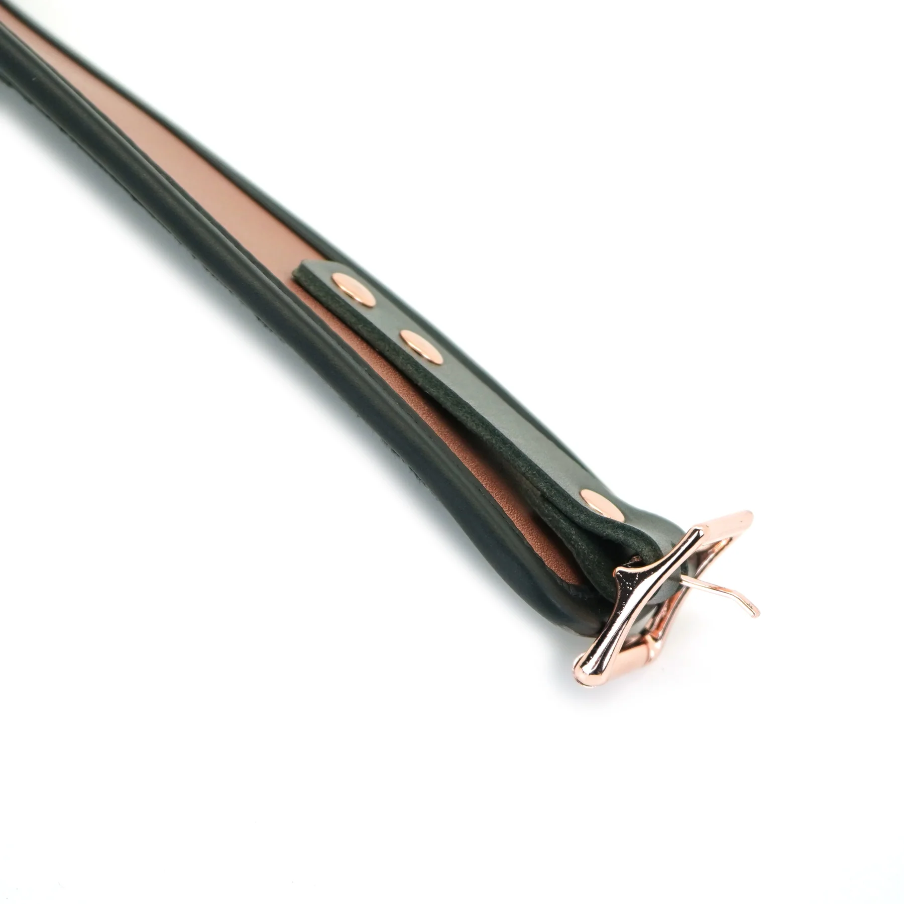 Spüre die sanfte Umarmung des bequemen, weichen Kunstfellfutters, wenn du unser roségoldenes Lederhalsband trägst. Es umschmeichelt dich und lässt dich sorglos in die aufregende Welt des BDSM eintauchen.