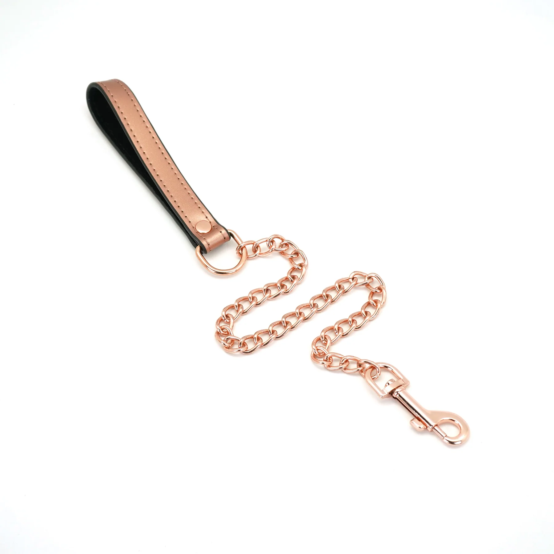 Die roségoldene Metallleine mit einem edlen Ledergriff bietet dir die perfekte Balance zwischen Kontrolle und Hingabe. Fühle, wie sich die Macht zwischen deinen Händen entfaltet und dein Herz vor Erregung schneller schlägt.