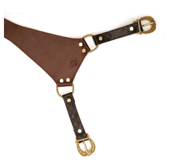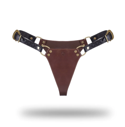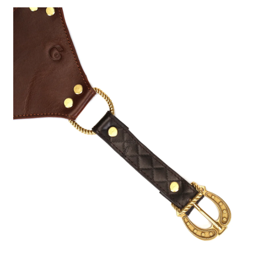 Der Höschen ist aus echtem Rindsleder in zwei Farben und Texturen gefertigt, mit Lammleder gefüttert und mit den charakteristischen Hardware-Akzenten von The Equestrian in Nugget-Gold verziert.