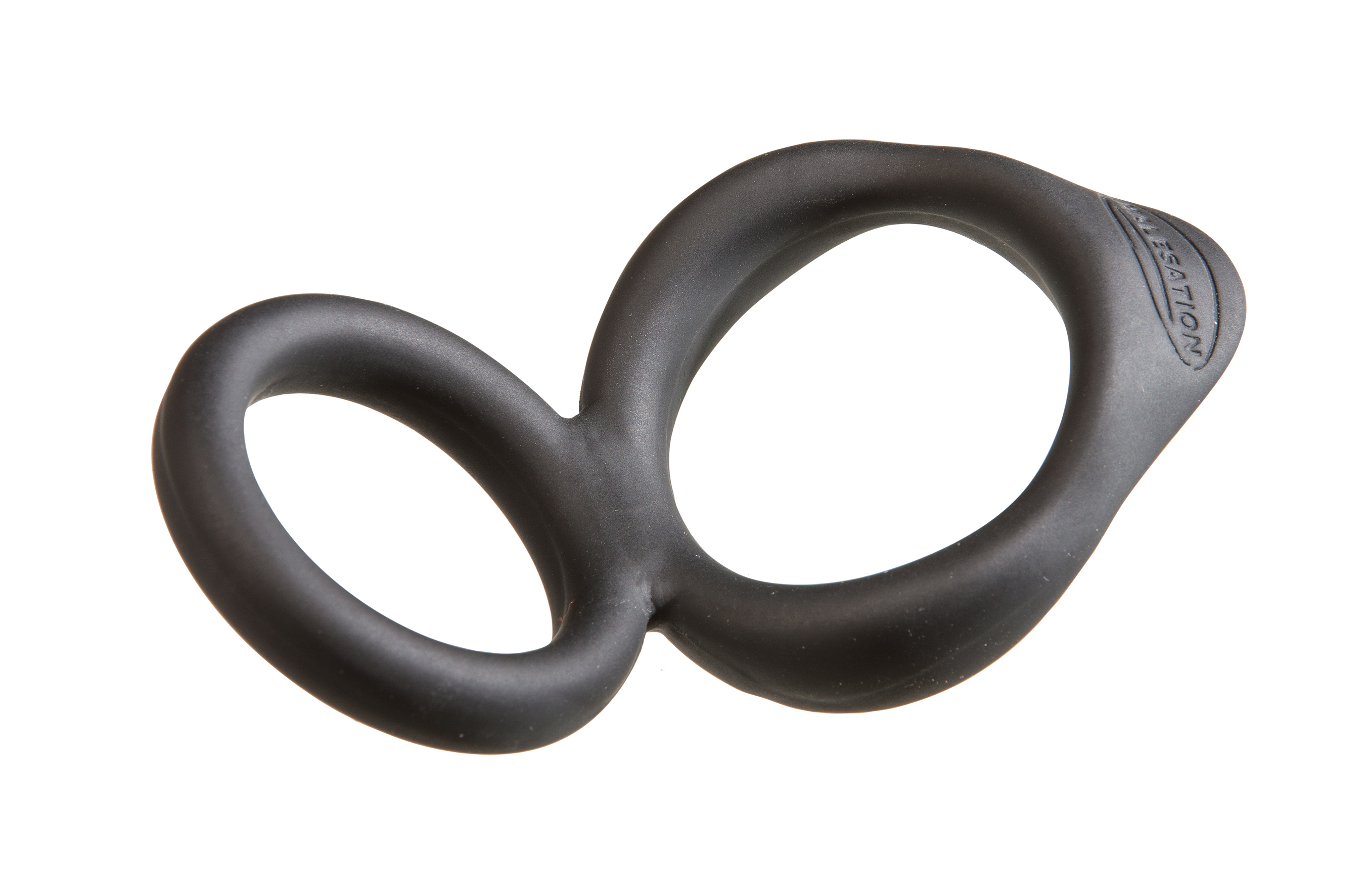 Doppelter Penisring in innovativem und ergonomischem Design. Penis und Hoden werden fest umfasst und die Erektion wird unterstützt.