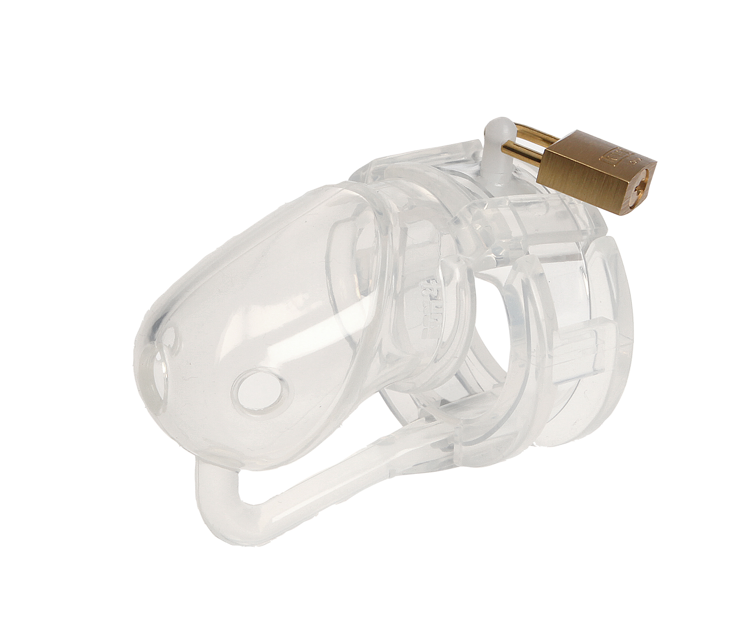 Keuschheitskäfig hergestellt aus hochwertigem, klarem Silikon. Im Lieferumfang enthalten sind: 1 Käfig (Gesamtlänge: 88mm, Innenlänge: 65mm, Ø 32mm), 2 Silikon Ringe: 40mm und 44mm, 1 Messing Sicherheitsschloss, 5 nummerierte Plastikschlösser, 2 Verschlussbänder und 2 Plastik-Pin für Verschlussband.