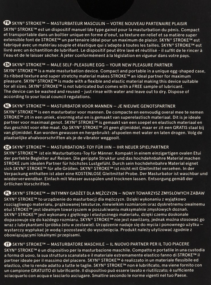 In einer diskreten Box versteckt sich der wiederverwendbare Masturbator Stroke von SKYN und ist einsatzbereit für den Handjob-Spaß zuhause oder unterwegs.