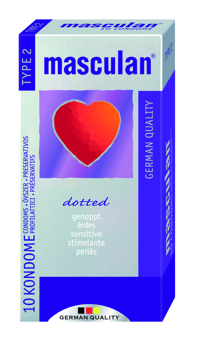 Typ 2 Kondome mit Gleitfilm und Reservoir, feinperlig genoppt, rosa gefärbt.