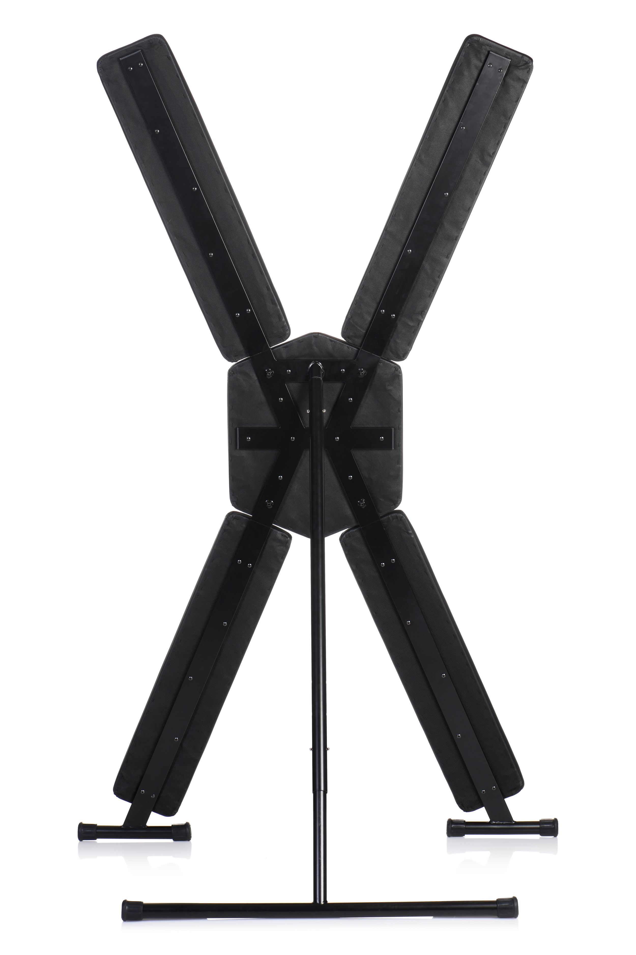 Das Kreuz ist freistehend und durch sein geringes Gewicht von nur 21,5 kg leicht von Raum zu Raum zu bewegen. Mit drei verstellbaren Neigungswinkeln (70°, 75°, 80°) lässt es sich individuell anpassen – je nach Vorliebe und Spielart.