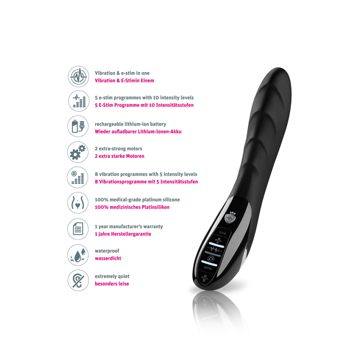 - 5 E-Stim Programme mit 10 Intensitätsstufen