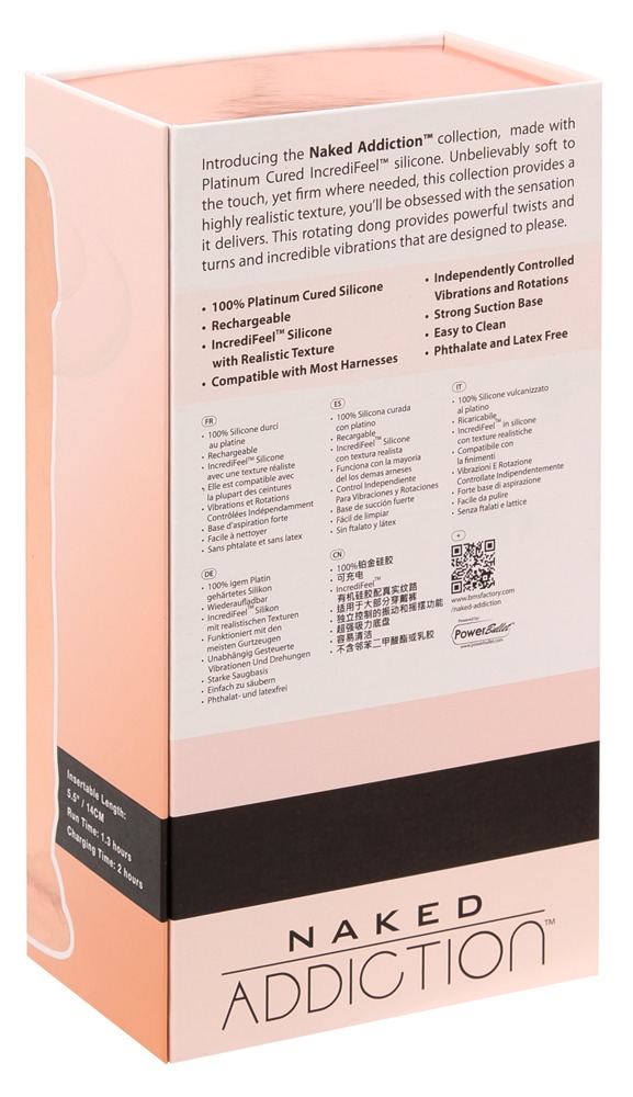 Biegsamer Naturvibrator 8" Rotating & Vibrating Dong von Naked Addiction im lebensechten Penislook mit feiner Äderung und prall ausgeformter Eichel. Mit Saugfuß unter den griffigen Hoden, der auf jeder glatten Oberfläche fest und sicher haftet und somit ein freihändiges Vergnügen ermöglicht. Somit ist der Naturvibrator auch kompatibel mit Strap-ons und Harnessen.