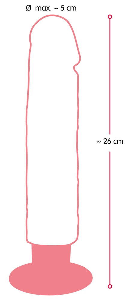 Gesamtlänge 26 cm, Einführtiefe 21,5 cm, Ø 4-5 cm. TPE, ABS, PVC.